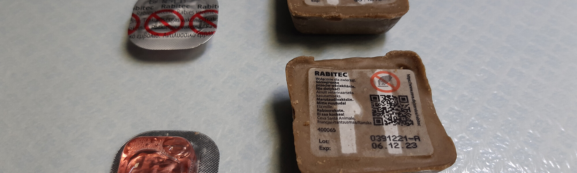 Maastossa löydettyihin syöttirokotteisiin ei saisi koskea, koska pienpedot jättävät syötit syömättä niihin tarttuva ihmisen hajun vuoksi ja rokottaminen epäonnistuu.
