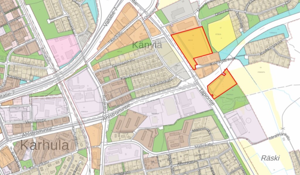 Liiketonttien vuokrahinta Tapiontiellä on alkaen 6 €/k-m²/vuosi.